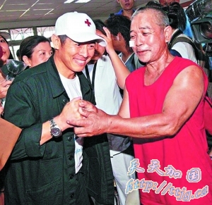 李连杰8月13日起带着物资深入台湾灾区,为备受超级台风莫拉克摧残的台湾中南部灾民及义工打气。前日他继续探访灾区,有灾民向他哭诉:“我家全没了!”李连杰赶紧握住他的手给予安慰,场面感人。不过也有轻松的时候,李连杰所到之处,大批灾民和义工均蜂拥上前看热闹,许多年轻女义工更是尖叫着将他团团围住,李连杰只能笑说:“这么围着,我怎么探望灾民啊。”