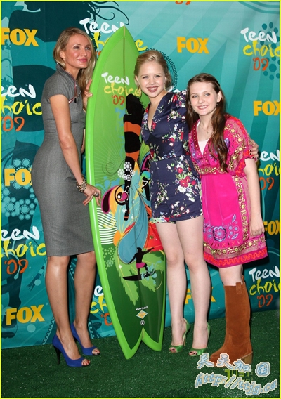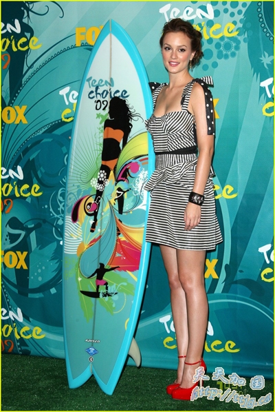 这也是一款胸衣款的小礼裙,虽然她的选择对于青少年票选大奖来说有些太正式了,不过提示你注意她的鞋子手包以及配饰,那些银光闪闪的撞钉太帅了!