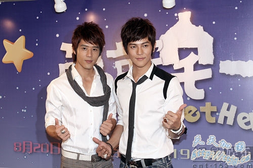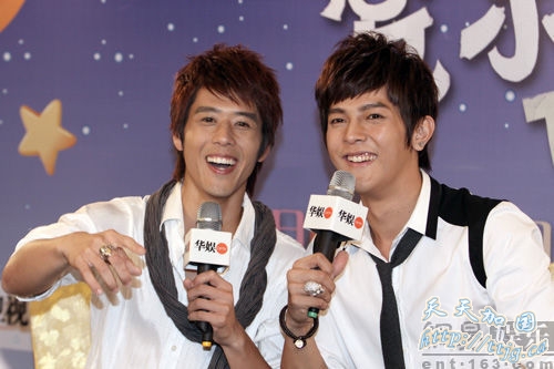 网易娱乐8月20日讯(图文/粤港报道组 DoDo、Mandy报道)由汪东城、杨丞琳、及胡宇崴主演的偶像剧(看相关剧评)《爱就宅在一起》8月20日在华娱卫视首播,8月19日汪东城、胡宇崴现身广州为新剧造势。汪东城自曝与女主角杨丞琳有“夫妻相”也有“兄妹相”,感觉很亲切,不排除有进一步发展的可能。而在戏中饰演傻憨小少爷的胡宇葳则表示为揣摩角色压力很大。
