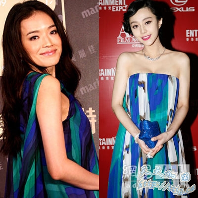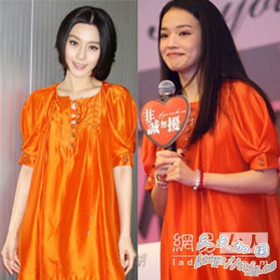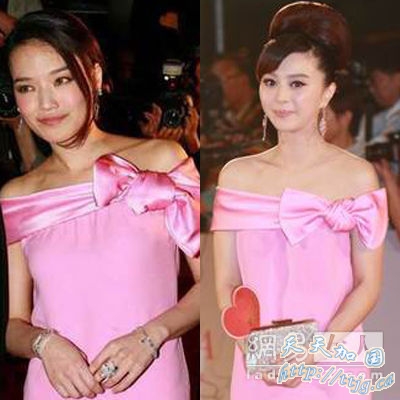 理由:这款小礼服是娃娃衫的款式,舒淇穿出了青春甜美的感觉,而范冰冰给人的感觉略显老气。