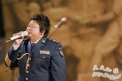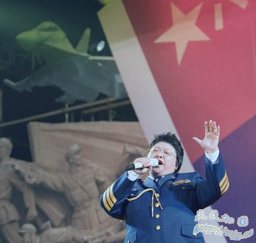 人民图片网9月4日报道 2009年9月3日晚,在空军司令部举行的“蓝天飞歌颂祖国——空军司令部庆祝新中国和人民空军成立六十周年歌咏晚会”上,歌星韩红一曲《我们的天空》赢得官兵的阵阵掌声。