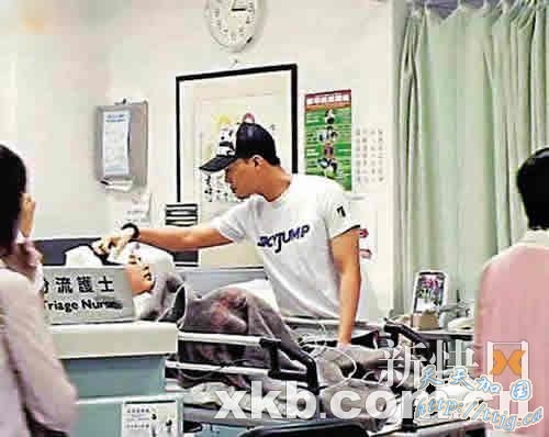 Tina被送入医院后,在急症室外卧床的她状甚痛苦,香港记者见天华一直陪伴在侧,更不时细心地为老婆擦汗。