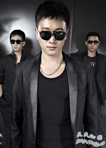 佟大为、黄磊、任重模仿《黑客帝国》造型。