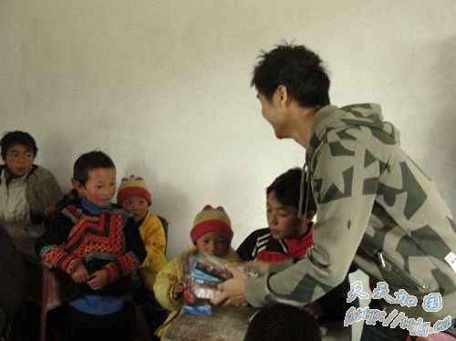 20日中午,田亮一行到达四川,随后马上坐着公共汽车颠簸了六个多小时来到了美姑县城,这时已经到了晚上。有了多次和孩子们交流的经验,此次田亮也是特地提前和工作人员在北京购置了一批文具准备送给孩子们,当田亮到达四川美姑县城时又看到了卖体育用品的商店,于是马上进去,给孩子们买了足球、篮球、跳绳等各种体育用品。准备好送给孩子们的东西之后,大家便到了当地宾馆休息。21日清晨,田亮一行早早地踏上前往凤凰小学的路程,经过一个多小时悬崖山路的颠簸终于到达了目的地。当地的乡亲们得知这位平时只能在电视上看到的明星出现在自己眼前时,都激动地和田亮打起了招呼。简单问候之后,田亮开始给小朋友们送发提前准备好的各种礼物,原本还有些害羞的孩子们此时见到精美的礼物都开心地笑了。由于当地都是彝族小朋友不会说汉语,为了拉近和孩子们的距离田亮开始说起了四川话,而这时个别村民也自愿当起了翻译才解决了这个难题。