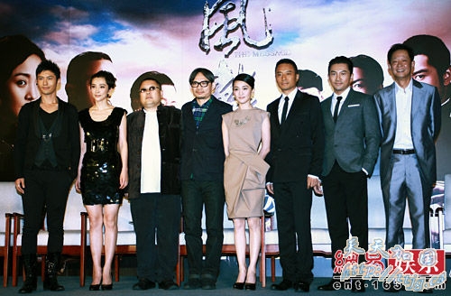 由陈国富、高群书执导,周迅、李冰冰、张涵予、黄晓明、苏有朋、王志文、英达等主演的谍战大片《风声》今日在北京首映。昨日在天津出席全球首映礼的主创们,今日又集体亮相,回忆《风声》拍摄故事。