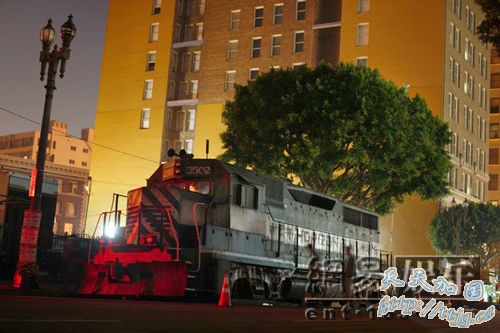 网易娱乐9月24日讯 上周六,克里斯托弗·诺兰(Christopher Nolan)执导的动作科幻片《盗梦空间》(Inception)剧组在洛杉矶的市区封锁了四条街区拍摄片中一场动作重头戏,为此还动用了火车头。这场枪战戏包括了打碎玻璃、烟雾、狂风暴雨等效果,最高潮的部分是汽车与火车的相撞,拍摄中还有一位特技演员受伤。