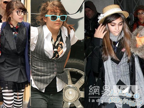 中性风狂刮,小西服+马甲=中性风,让小Lourdes捕捉到,还翻出了新花样,搭配超大眼镜,俨然学院派,超赞;蓝色框眼镜实属创新,大家也可以选择其他鲜艳色彩