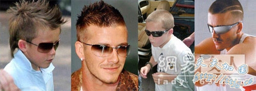 模仿秀 墨镜、鸡冠头可是小贝的标志,现在成了贝家人的标志了; 下次去理发,带上你的宝贝小公子吧