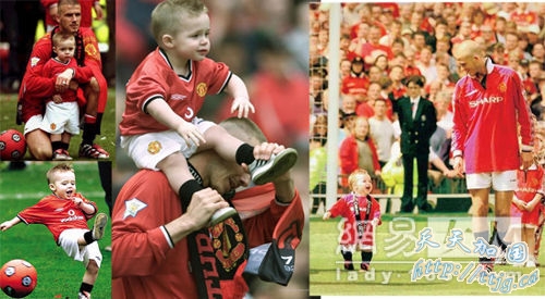 红色球衣档 绿茵场上父子兵,红色球衣狠狠抓住观众眼球;买球衣时,记得也给儿子买一套哦