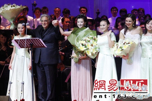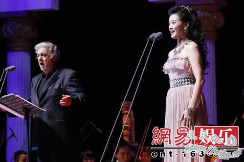 25日晚,“多明戈特邀嘉宾宋祖英‘爱的火焰’上海音乐会”在上海大舞台举行。宋祖英和多明戈联手演绎了去年北京奥运会闭幕式歌曲《爱的火焰》,还以中文对唱了《康定情歌》,得到全场观众最高的欢呼声。