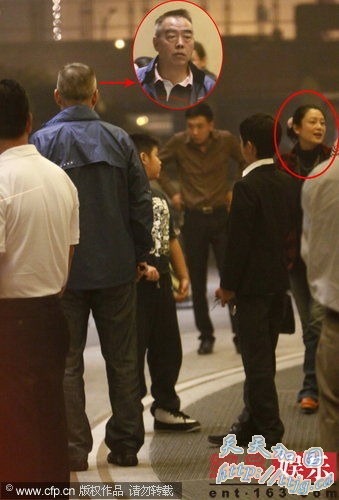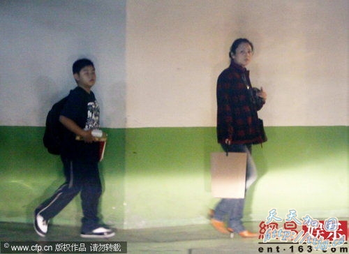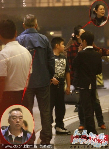 当天陈凯歌与陈红衣着相当休闲随意,一向爱美的陈红穿了件暗红大方格外套,显得有些臃肿。陈凯歌的两个儿子像是刚从学校放学,陈凯歌的大儿子身穿剪裁得体的黑色校服,里配白色衬衣,显得格外英俊。他很平静的和老爸陈凯歌聊了一会儿,似乎是在聊什么很正式的话题,给人感觉相当沉稳。陈凯歌小儿子穿一件黑色T恤,他与哥哥相反,是个暖场高手,现场显得相当活跃,一会儿牵牵老爸的手,把小脑袋靠在老爸陈凯歌的怀里。一会儿又和杨树热情拥抱,大声说笑。