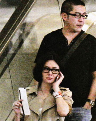 关之琳与眼睛型男亮相上海。