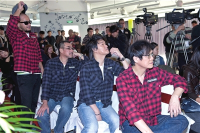 纵贯线成员投入地观看巡演视频集锦。(吴平/摄)