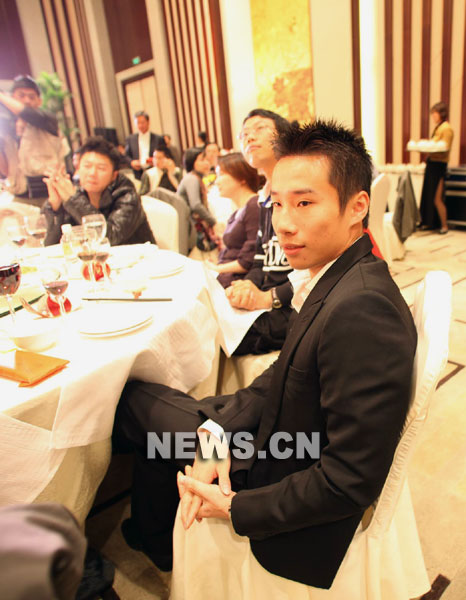 11月12日,奥运冠军黄旭在南京举行了规模宏大的婚礼仪式,新娘范雯在收到定情信物后幸福地笑开了花。记者在现场看到,仅婚礼工作人员就动用了近百人,而出席婚礼的亲人和嘉宾则超过300人。国家体育总局体操运动管理中心、江苏体育局、南京体院以及 CEMNI千年企业代表,都先后为黄旭送上了厚重新婚贺礼。 “无论是国家体操队的还是江苏体操队的,我都给他们发过了喜帖”黄旭微笑着告诉记者。身为体操队老字辈,再加上人缘一直不错,因此黄旭的这场婚礼也成了体操队一次大聚会,黄旭的铁哥们——奥运冠军杨威、邹凯、李小鹏、肖钦等均出席了婚礼,而因天气状况未能参加婚礼的队友,也纷纷通过视频或语音的方式为黄旭送上了新婚祝福。 |