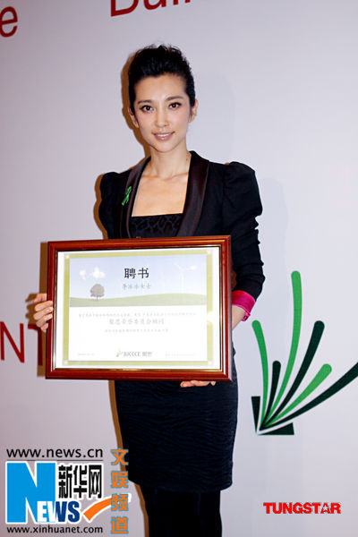 李冰冰表示:“我将身体力行地履行“L.O.V.E”誓言。由我资助的创立公益品 牌“L.O.V.E”第一期扶持项目就是 “百万森林计划”。李冰冰还与市长们,以及来自世界最大能源和多元化企业GE公司的高管在“绿色创想之旅”晚宴上 畅谈了各地方的环保项目。