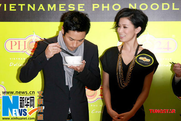 30日中午,郑嘉颖与佘诗曼以荧屏情侣身份出席沙田为连锁越式汤粉专门店开幕礼,担任剪彩嘉宾。活动中,阿佘亲手制“越式鸡丝汤”让嘉颖品尝,嘉颖给阿佘有98分,并指扣的两分是不想她自满,希望她尚有进步空间。近日播出《宫心计》嘉颖和阿佘乘机可以以荧屏情侣身份一起工作,对此嘉颖说,都是向“钱”看,所以都可以接受,问到是否收贵一点?他说:象征式啦!