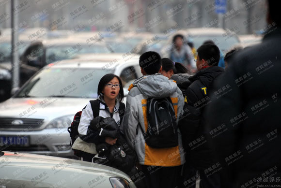等待王菲与李亚鹏出来的时间,记者还见到了已经升中学的窦靖童与同学步出学校。戴眼镜、穿校服、举止打扮学生气十足的她与其他同学并无两样。不过记者发现童童并没有和前来见老师的父母一起离去,而是与几个同学一起坐其他的房车离去,看来童童在学校的人缘应该不错。