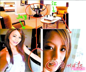 今年年收入5.5亿新台币的周杰伦,在美国拍摄西片《青蜂侠》已经3个多月,读者发现,周杰伦友人在博客张贴的美国饭店房间陈设,与同时期江语晨放在博客的饭店房间照片对比,沙发、台灯、窗帘的款式、颜色都一样,推论出两人至少是住在同间饭店,目前她已将该批照片紧急移除。江语晨所属唱片公司回应说,很多饭店房间布置得都很像,硬要说是同一间很牵强。