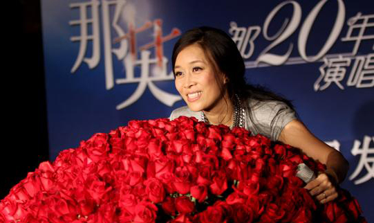 当她戴着夸张的粗链,看起来十分阔气。现场汗弄湿腋下的衣服,十分尴尬。她现场还自曝自己的儿女最喜欢听她演唱《雾里看花》。李静现场主持了这场发布会。