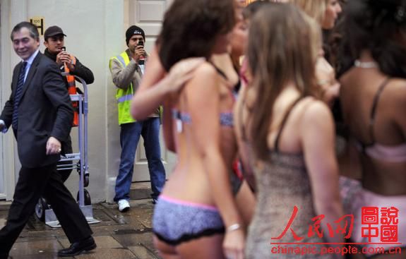 英国伦敦的冬天潮湿阴冷著称,不过一家内衣公司反其道行之,在人们裹起厚衣服时,邀请数十名模特内衣上街大秀身材,吸引市民的眼球。
