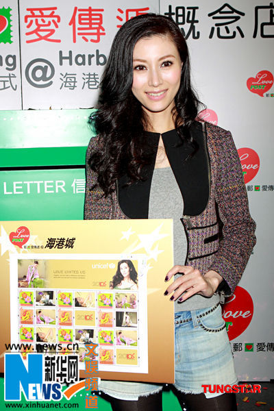 李嘉欣展示公益邮票