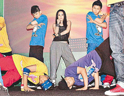 阿娇与舞蹈演员比舞、比造型。