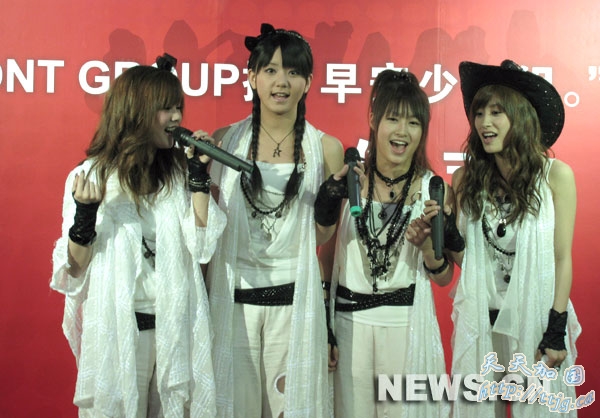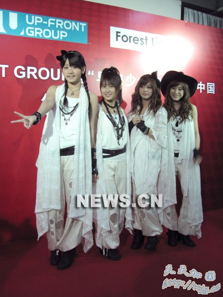 当红日本偶像、首席组合“早安少女组。”由首次加入该组合的中国籍成员李纯与钱琳带队,携正副队长高桥爱、新垣里沙在近百名歌迷的迎接下抵达北京,为其母公司Up-Front 集团正式登陆中国助阵。并于12月10日上午,在D-park北京时尚设计广场正式亮相。 做为日本五大演艺集团之Up-Front集团统括多间经纪公司、唱片公司、出版社、食肆、牧场等,仅其唱片品牌共有13个,旗下拥有以“早安少女组。”为首的数百名日本当红艺人。此次Up-Front集团登陆中国,以“早安少女组。”为起点通过中国合作伙伴Forestline China 北京未来门科技有限公司的本土化运作,在无线及互联网版权提供等业务上试水中国市场。此次Up-Front集团携领衔日本偶像组合多年,长居首席之座达9 年之久的“早安少女组。”一行四人,其中包括首次加入该组合的中国籍成员李纯与钱琳及正、副队长高桥爱、新垣里沙更显此次登陆中国重要意义
