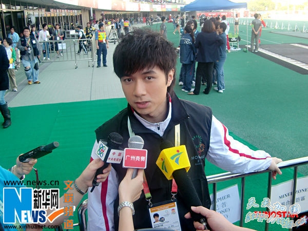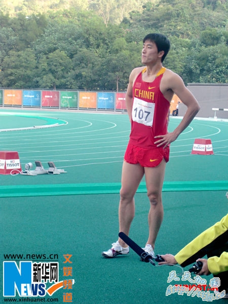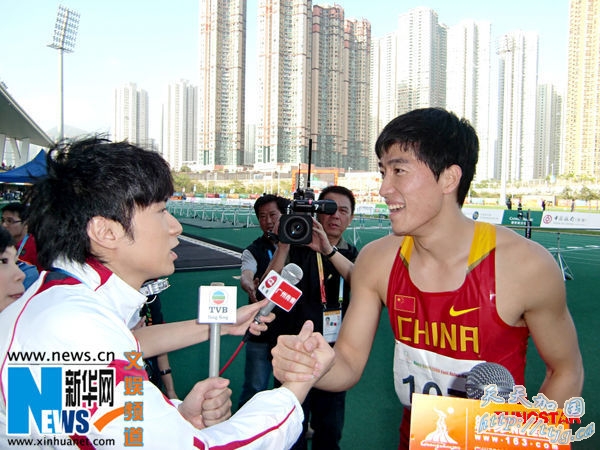 刘翔赴港参加东亚运,成功夺得东亚运110米跨栏决赛金牌,身为他好友的古巨基,代表无线体育组到场直击采访他。