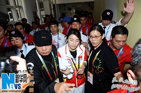 郭晶晶昨天在新闻发布会上否认了自己将退役,并表示:“不管我退不退,他(霍启刚)都会支持我。”随后又得体地说:“我的主要任务是比赛,我会把精力放在比赛上面。比赛开始的时候也想表现好,但因太想表现好,所以技术动作发挥得有点不好。”