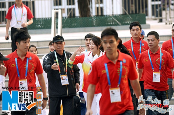 昨天的比赛郭晶晶/吴敏霞这对奥运冠军搭档,虽实力明显占优,但并非一帆风顺。第一跳,郭晶晶在起跳前一刹那突然又转头看了一眼吴敏霞,显然注意力并未完全集中,这一跳两人也因为配合不够默契只排第三位。还好两人之后渐入佳境,轻松夺冠。