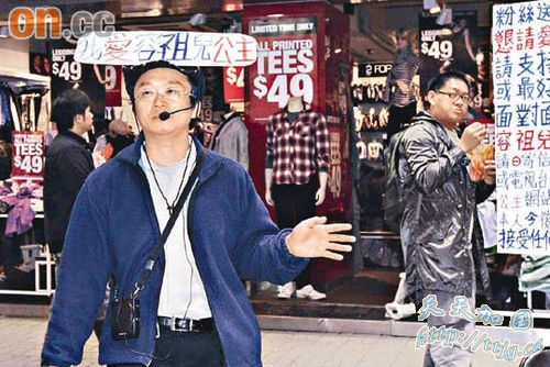 男子在旺角街头向容祖儿示爱。