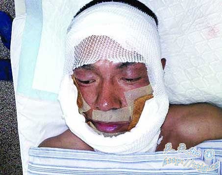 资料图片:王挺受伤时的情景