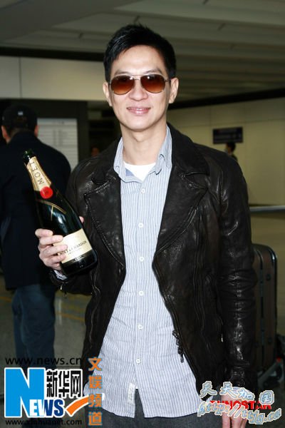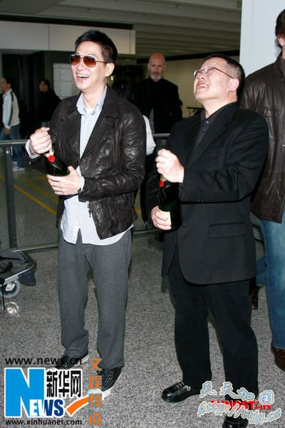 英皇电影行政总裁利雅博专诚接机张家辉,并在机场开香槟庆祝。
