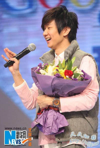 林俊杰获赠鲜花。