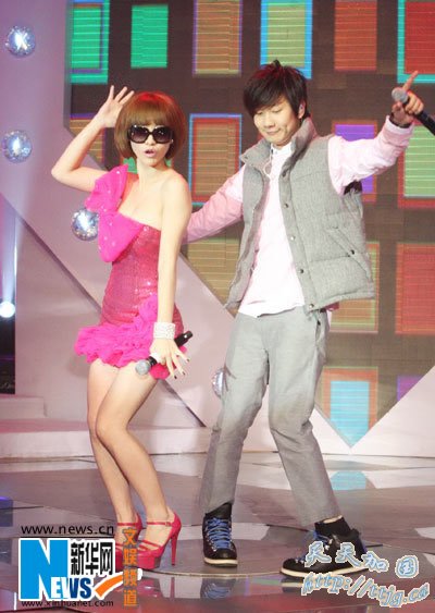 柳岩变身“Lady Gaga”与林俊杰贴身热舞。