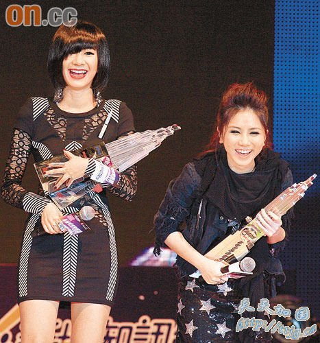 去年新人王G.E.M.(右)与吴雨霏斗唱功,平分秋色。