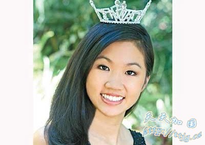 美国当地时间十二月六日,代表加州赴奥兰多参加“美国小姐选拔会”(American Coed Pageant)妙龄小姐总决赛的圣玛利诺高中十一年级、年仅十六岁的华裔女生崔晴晴(Anna Cui),不负众望摘取“亲善小姐”后冠后,无可置疑成为美国妙龄小姐选美会26年赛事历史的第一人。