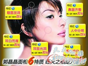 据香港媒体报道,李嘉欣、范冰冰不时被指是整容女士的“样板脸”,想不到,连近年屡传将嫁入霍家豪门的郭晶晶,也成为“整容目标”,原因并非郭晶晶相貌标致,而是因她拥有一张“旺夫脸”。