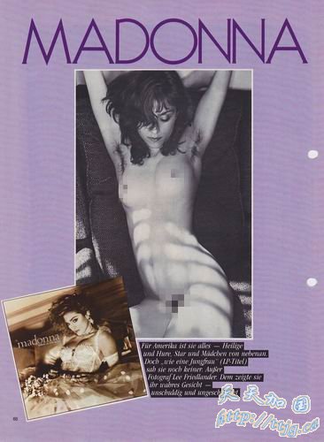 有人记得玛丹娜刚出道时,在1985年曾经帮德国版的『花花公子』杂志拍摄过裸照吗?哇哩咧,真是完全不设防的光溜溜,虽然有点儿小青涩,但依然是「玛大胆」,动作可真是自然又一气呵成的咧