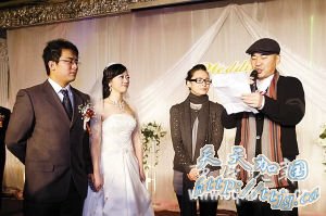 另据记者了解,这对新人也从事艺术事业,新郎是重庆歌剧院的青年小提琴演奏家,新娘也是搞乐器的,新娘的妈妈跟蒋勤勤的妈妈是亲姐妹。
