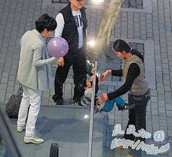 当日,拉姑夫妇带着孙子到超市逛街,然后再到戏院买气球。小朋友出来逛街当然高兴,加上手拿气球,全程表现兴奋。而在准备坐车离开前,拉姑突然教乖孙Lucas在路边围栏杆上玩秋千,Lucas立即将气球交给菲佣然后双手抓紧栏杆,不断抓着栏杆玩起荡秋千,旁观的记者觉得相当危险,但拉姑竟然拍手鼓励,Lucas也玩得不亦乐乎。