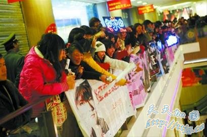 昨日到场的粉丝中,大多数是20岁左右的女孩,但也不乏男生,记者还看到了些五六十岁的大妈、大叔。询问之下才得知,他们是替自己的孩子甚至孙子来的。“我孙女周末要补课,又喜欢他们(飞轮海)得不得了,我反正退休了也没什么事嘛,就来帮她签一下好了。”一位大妈对记者说。不过,几个小时排下来,尤其是有些“路段”还要暴露在冷风中,他们也着实有点吃不消。但是,小女生们可不这样认为,一个女孩子对记者说:“只要能跟他们握个手,再排上一天我都愿意!”