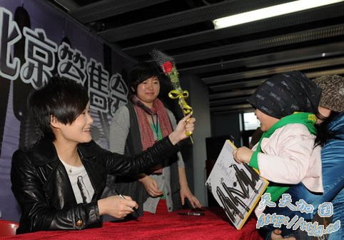 昨天(23日),李宇春举行新专辑签售会。对于之前有媒体报道,李宇春去年收入6000多万元,对于该种说法,李宇春回答:“不可能。我不知道。”对于自己的收入状况,李宇春表示她自己都不清楚,由于她自己不善理财,都是家里打理。为避免前几张专辑签售提前发号造成的歌迷通宵排队的场面,此次签售采取了当天现场排队的形式。不过还是有很多歌迷一大早就来排队,9点开门前,中关村图书大厦门口就已聚集了几百位歌迷。李宇春当天的心情很好,签售时不时露出可爱的搞怪表情。
