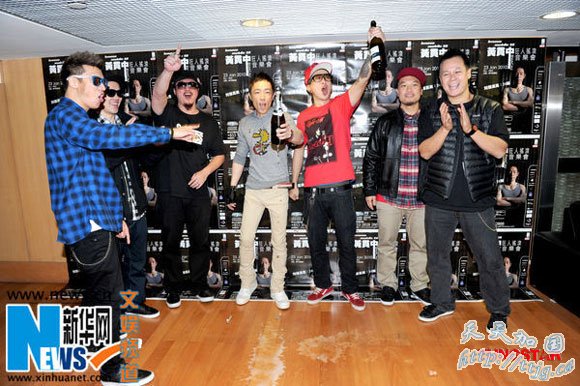 结束演出,黄贯中与乐团成员开香槟庆功,兴奋难掩。
