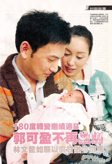 记者前往林氏夫妇位于西贡的新居采访时,怀抱宝宝的郭可盈一脸幸福洋溢,而林文龙则刚刚为宝宝洗完澡,弄得满头大汗要沐浴更衣。其后,他就一直抱着宝宝不放,还笑不拢嘴地亲手喂女儿喝水,手法十分熟练。郭可盈取笑丈夫说:“他亲宝宝的时候从头亲到脚趾,朋友都说十年来没见过他笑得如此开心!”