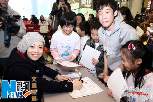 邓萃雯为小朋友签名