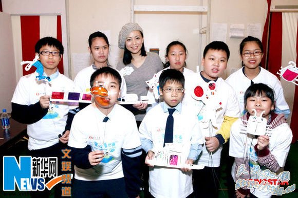 邓萃雯与小朋友们合影