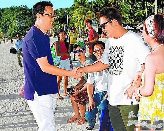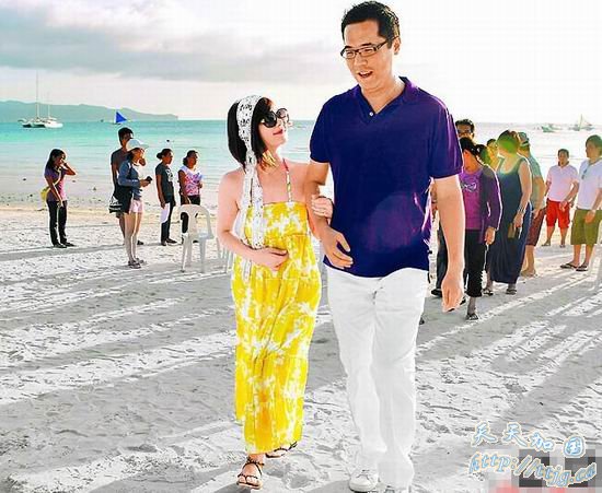梁静茹(左)昨挽着准夫婿Tony在长滩岛沙滩上彩排婚礼,2人一脸甜蜜。