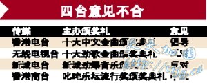 因为无线与四大唱片公司的纠纷,无线劲歌总选封杀四大公司歌手,导致四台联颁“传媒大奖”公信力被怀疑。对此,香港电台(港台)提议四台举行统一颁奖礼。但其他颁奖礼主办方也作出回应,无线和新城都以要有不同声音为由持反对意见,香港商台表示会密切留意事态发展和各方反应,是整个乐坛的事非一个人说了算。张学友则表示支持,早已宣布不拿奖的他称若能成事,他有兴趣参加统一后的颁奖礼。
