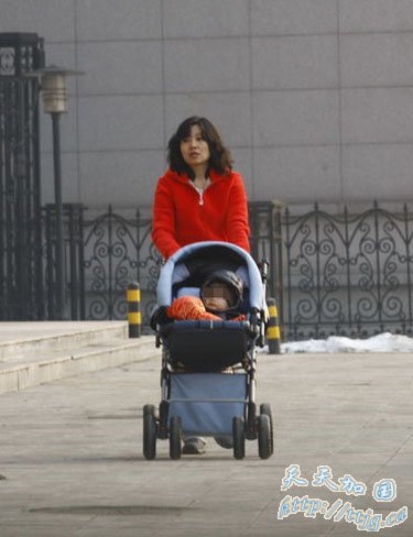 近日,董洁、潘粤明夫妇二人在归家途中时,恰好遇见一位保姆模样的中年妇女推着一个约1岁的小男孩。仔细看了看车中孩子的模样,眉眼之间跟潘粤明非常相像。两人车子停稳后,中年妇女推着孩子很快来到车门前。而坐在副驾驶座上的董洁也很快的下了车并且对着孩子的小脸就吻了起来。而后董洁将搁在车子后面的老虎玩偶拿出耐心的在孩子的小车中摆好,而后还为孩子整理了半天衣服才上车离开。离开前董洁还溺爱地与小家伙挥手告别。车子随后驶入小区,而小孩子被推着晒了一会儿太阳后也回到潘粤明夫妇居住的那栋楼。想必这应该就是两人的爱子 “潘董”了。